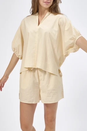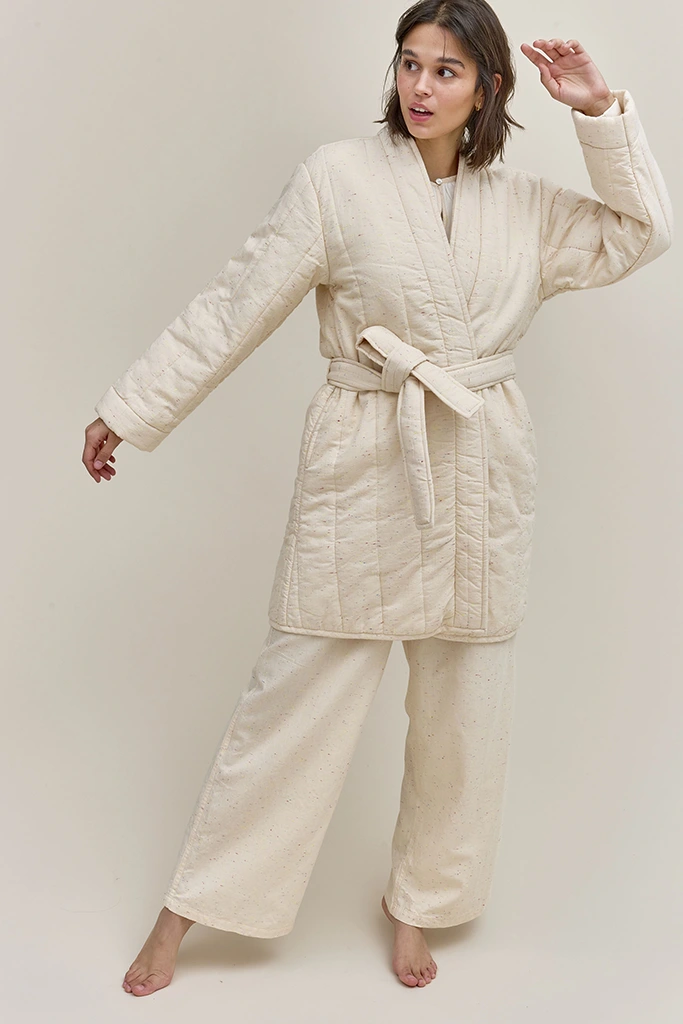 Dorélit werkt enkel met natuurlijke stoffen, zoals katoen, jersey en flanel. Het zijn materialen die zich perfect aanpassen aan wat je lichaam nodig heeft: verkoelend in de zomer, behaaglijk in de winter. Omdat we enkel voor de meest kwalitatieve stoffen kiezen, kan je Dorélit jaren later nog met evenveel plezier dragen. Dat is goed nieuws voor de planeet, én voor jouw garderobe.